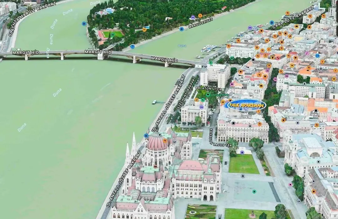 Ubicado en el barrio 05. Belváros - Lipótváros, este hotel está al alcance del parlamento de Hungria. El hotel está ubicado al lado del Parque Olimpia, a tan solo 600 m de la estación de metro la plaza de Kossuth. El Apartamento Falk Studio Budapest está a 2 km de la Iglesia de Matías. El ferrocarril Batthyany ter está a unos 10 minutos a pie. Debido a su ubicación a 25 km del Aeropuerto Budapest-Ferenc Liszt, se tarda solo 31 minutos en coche para llegar allí.
